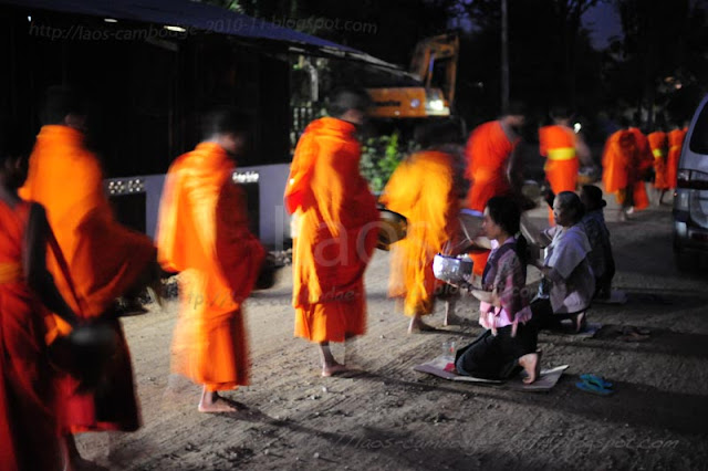 Les fameuses processions des moines. Nous avons choisi d'aller à l'extérieur de la ville pour participer à cette acte bouddhique.