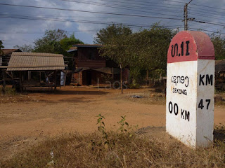 Nous faisons une petite pause à Sekong, ville sans charme particulier. Juste après, la route est magnifique et traverse de nombreuses rizières au vert intense. Le ciel s’est couvert et l’on pourrait croire que le temps se met à l’orage, mais cela ne dure pas, et le soleil revient rapidement.
